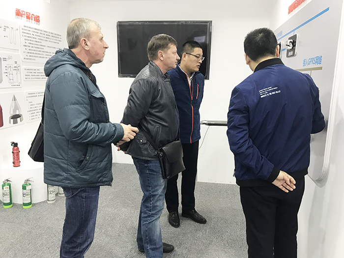 華神消防在不斷開拓和鞏固國內(nèi)市場的基礎上,積極拓展海外市場。2018年3月12日,來自烏克蘭的三位客戶來到我公司進行參觀考察??腿嗽?/span>副總周斌和銷售經(jīng)理陪同下,參觀了華神消防展廳,并現(xiàn)場觀看了熱氣溶膠防護裝置的繞障及復燃實驗,國外客戶在全方位了解公司的規(guī)模實力、研發(fā)實力及詳細的產(chǎn)品介紹后,高度贊揚了華神氣溶膠類產(chǎn)品和新產(chǎn)品逃生瓶的可靠性及質(zhì)量等,對華神的產(chǎn)品產(chǎn)生較大的興趣并期望與公司長期合作。
