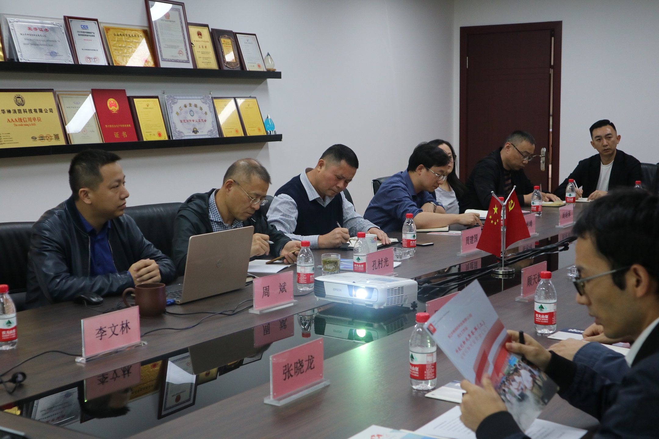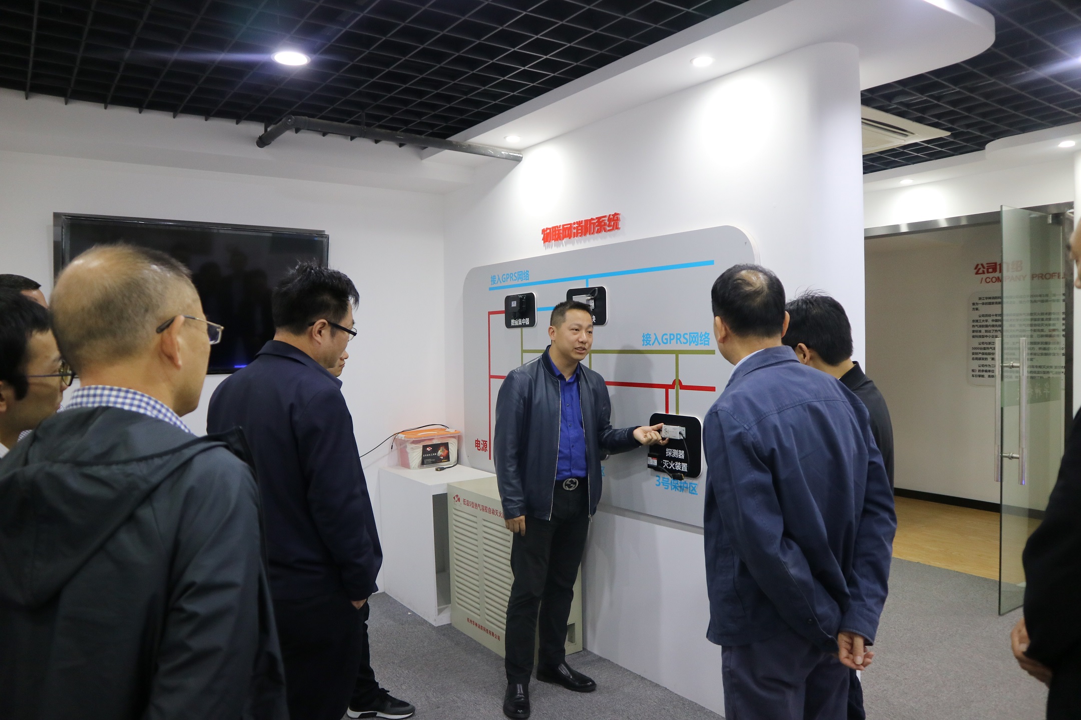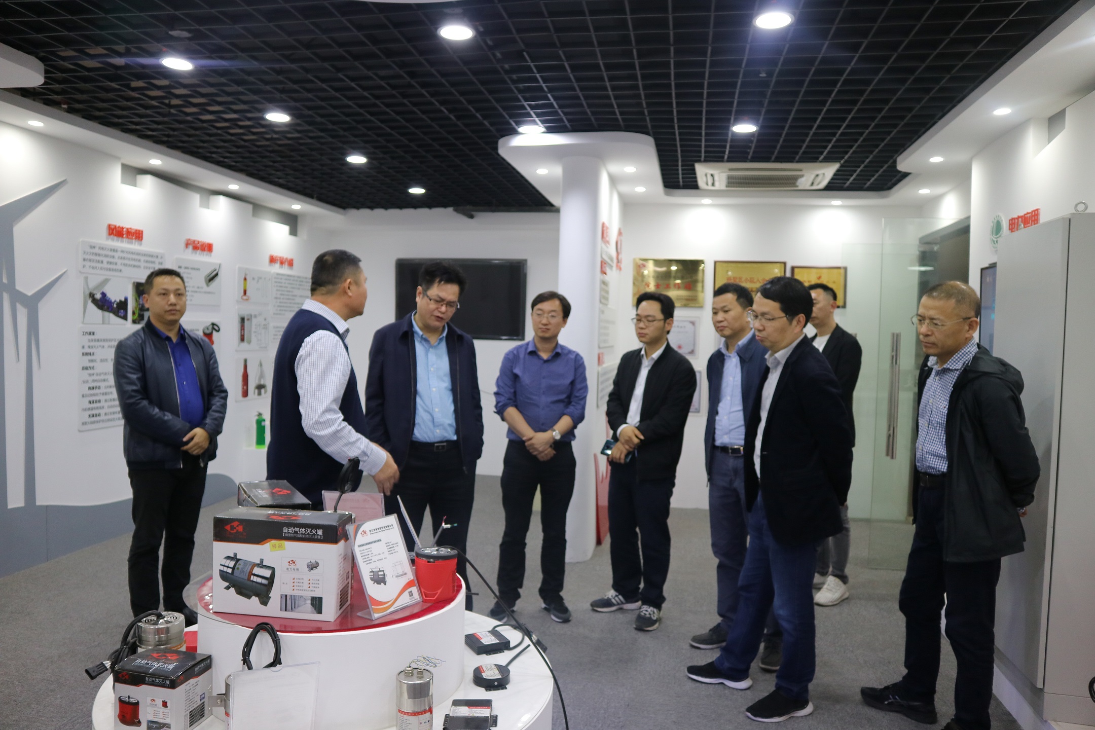 國網(wǎng)國網(wǎng)浙江省電力公司、國網(wǎng)浙江電科院一行參觀了華神的榮譽(yù)長廊、公司展廳,華神消防總經(jīng)理周斌對(duì)公司概況、組織架構(gòu)、自主研發(fā)的消防系列產(chǎn)品、院士工作站、公司發(fā)展前景等逐一介紹,調(diào)研組仔細(xì)聆聽,認(rèn)真記錄,不時(shí)提出疑問。